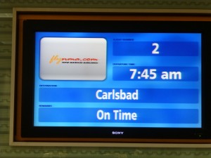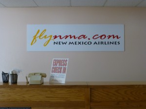 The instructions on the web site were clear that you must be at the gate an hour before departure, and I was a little worried I’d have a hard time locating the check-in counter. We arrived early, but my worries were unfounded because there’s a big sign we spotted immediately after entering the airport that pointed the direction to the New Mexico Airlines check-in desk.